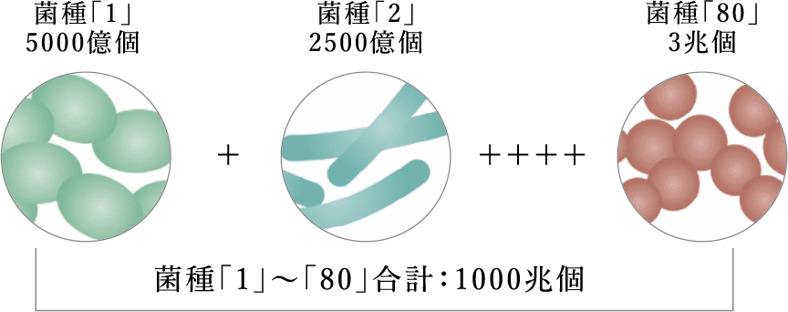 あなたの腸内には80菌種・1000兆個の菌が住んでいることになります。