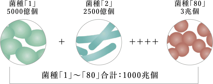 あなたの腸内には80菌種・1000兆個の菌が住んでいることになります。